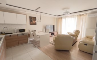 Do sprzedaży komfortowe, 67 metrowe, mieszkanie z obszernym tarasem położone w apartamentowcu na osiedlu Cztery Pory Roku. Lokal składa się z salonu połączonego z kuchnią, 2 sypialni, oddzielnej garderoby oraz łazienki z WC, prysznicem. Mieszkanie wykończone w bardzo wysokim standardzie z klimatyzacją. Kuchnia zabudowana nowoczesnymi meblami wraz z kompletnym sprzętem AGD. Salon wyposażony w kanapę, fotele i stolik kawowy, w sypialni łózko, duża szafa zabudowana. Dużą zaletą jest winda, brak gazu, woda ciepła z sieci. Zaletą jest również świetna lokalizacja. Blisko szkoła, przedszkole, plac zabaw, sklepy, komunikacja, las, jezioro.